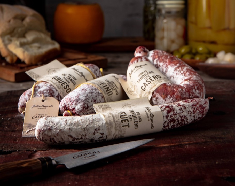 El Fuet con Emplume de Cagnoli está elaborado íntegramente con carne de cerdo seleccionada y embutido en tripa natural delgada, lo que permite una mordida suave y una integración total de sabores. La recomendación es degustarlo con su cobertura intacta. "Probarlo es como entrar a nuestra cantina de maduración. Es el aroma que sentía mi abuelo cuando abría la puerta y sabía, solo por el olfato, que el producto estaba en su punto justo y este hongo ya está viviendo, en la fábrica hace más de 80 años, eso es importantísimo", añade Juan Pedro.