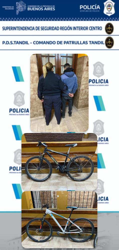 Personal del Comando de Patrullas Tandil detuvo a dos jóvenes acusados de haber robado dos bicicletas de una vivienda