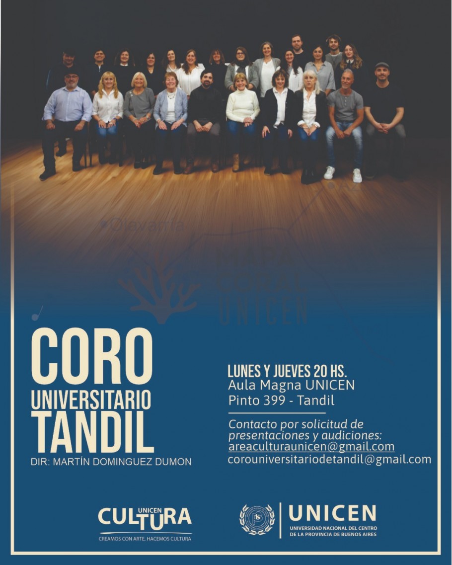 Los ensayos se realizan los lunes y jueves a las 20, en el Aula Magna de la Universidad (Pinto y Chacabuco) y quienes deseen participar de las audiciones pueden escribir a corouniversitariodetandil@gmail.com o comunicarse al 2494497297.