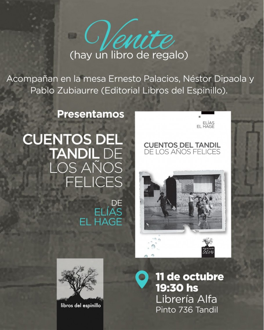 Este sábado a partir de las 19,30 horas en la librería Alfa, el escritor Elías El Hage presentará su último libro editado por Editorial Libros del Espinillo. El título remite a la zona de escritura del autor, 15 cuentos creados a partir de la memoria del Tandil del siglo pasado.