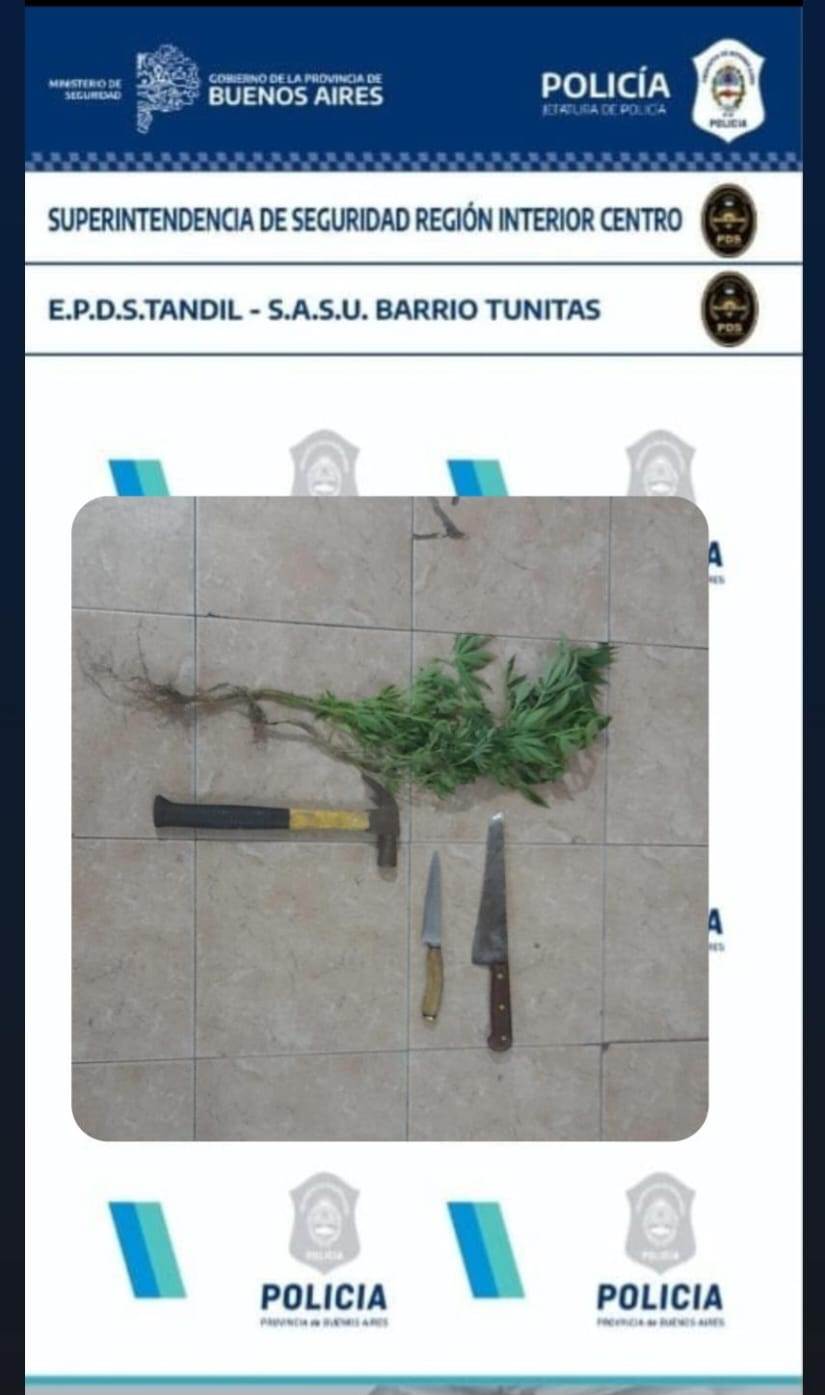 En el procedimiento se secuestraron las armas blancas utilizadas por los agresores y también plantas de marihuana que el principal involucrado cultivaba en el interior de la vivienda.