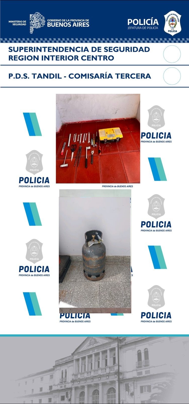 Pampa. Allí, el personal policial secuestró una caja plástica con herramientas