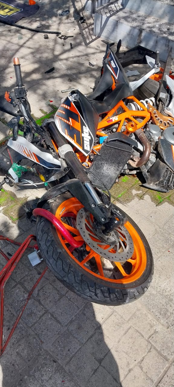 terminó impactando contra una motocicleta KTM Duke 390 que se encontraba
